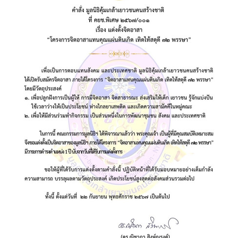 โครงการจิตอาสาแทนคุณแผ่นดินเกิด เทิดไท้สดุดี 72 พรรษา